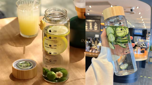 Clear Glass Water Bottle with Time Marker – High Borosilicate with Lid